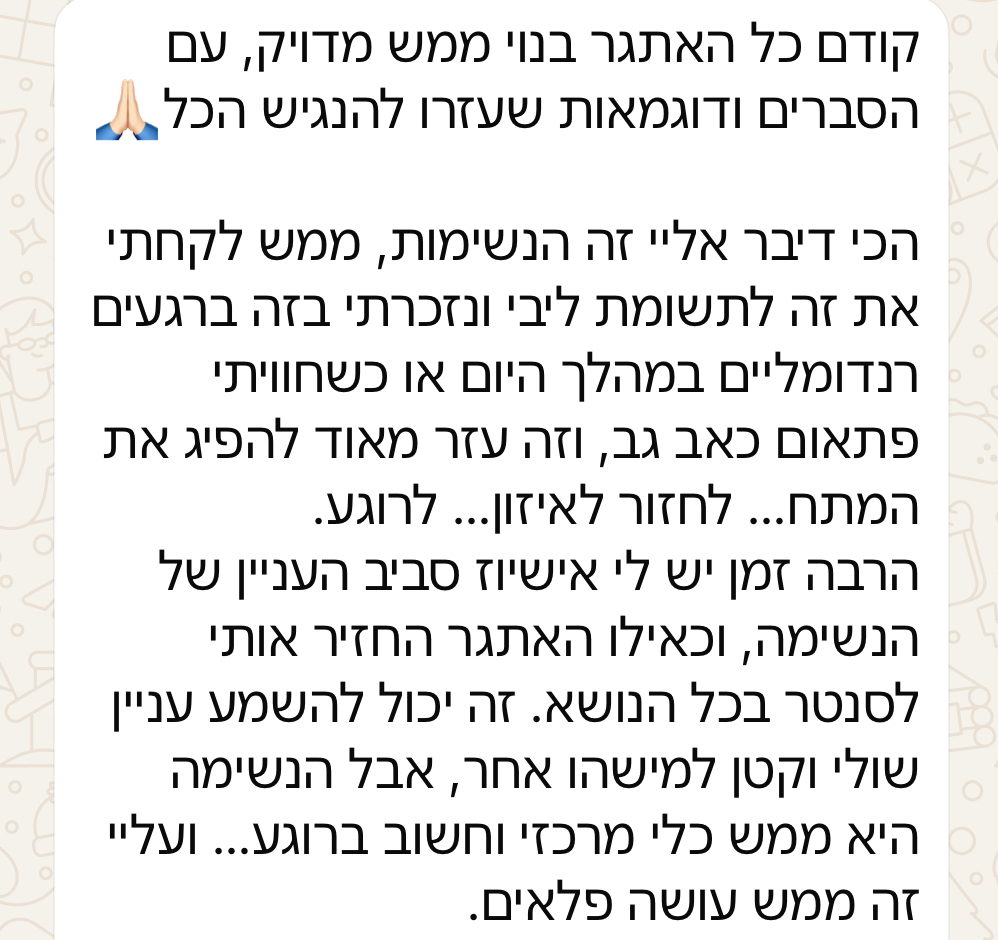 • הרגלים חדשים שמחזקים חוסן ורוגע ביומיום.